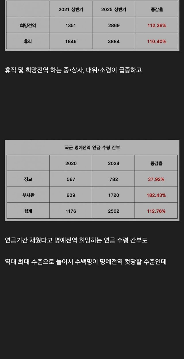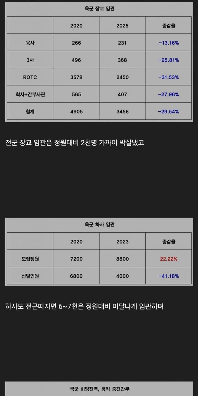 간부가 수만명이 미달나있는데