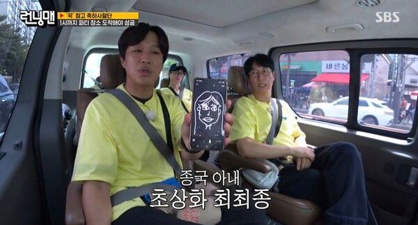 김종국 절친인 차태현이 게스트로 등장했다. 차태현은 김종국, 유재석, 지석진과 함께 이동 중인 차 안에서 휴대폰으로 김종국 아내 얼굴을 그렸다. 이를 알게 된 개그맨 유재석은 "쟤는 저걸로 그리고 앉아있네"라고 말했다.