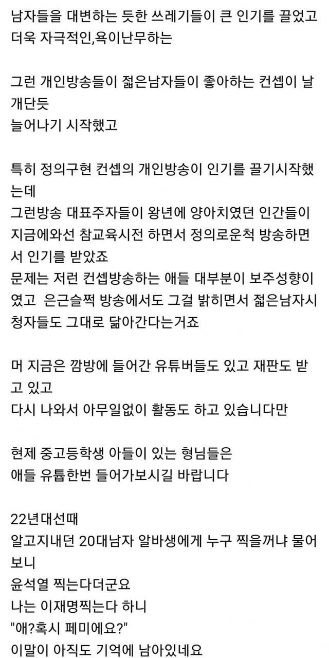 젊은층 극우화에 대하여 - 보배드림