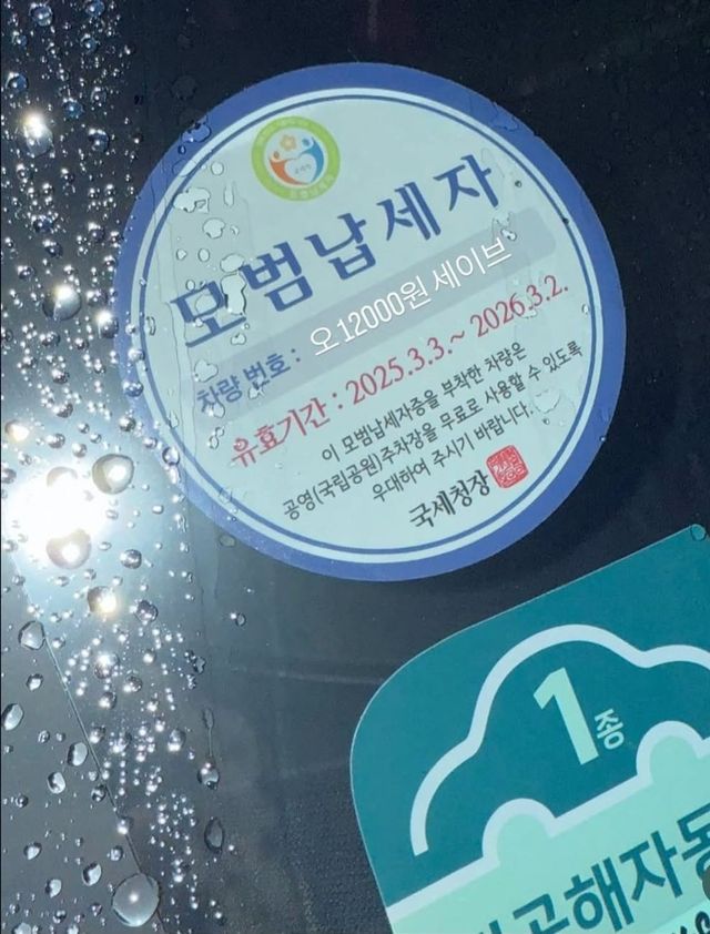 공개된 사진에는 비 오는 날 만화책방에서 여유를 즐기는 박하선의 소소한 일상이 담겼다. 그러나 무엇보다 눈길을 끈 것은 그의 차량에 붙어 있던 ‘모범 납세자증’이었다. 이는 세금을 성실히 납부한 이들에게 주어지는 것으로, ‘모범 납세자증’을 부착한 차량은 공영(국립공원)주차장을 무료로 이용할 수 있는 혜택을 받을 수 있다.