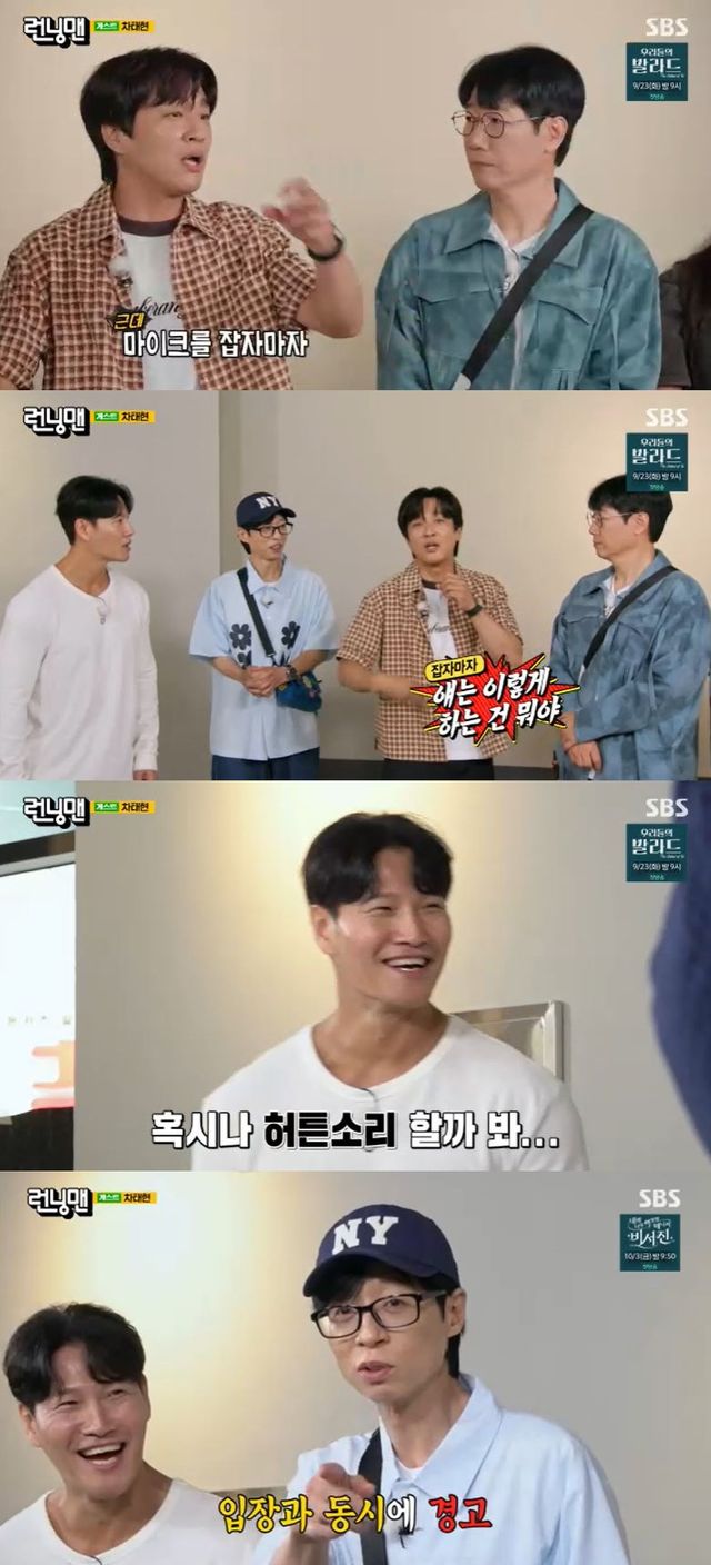 차태현은 이어 마이크를 잡자마자 김종국이 자신에게 손짓을 하며 단속했다고 밝혀 웃음을 자아냈다. 김종국은 "잔소리 하지 말고 빨리 하라는 얘기였다"고 해명했다.