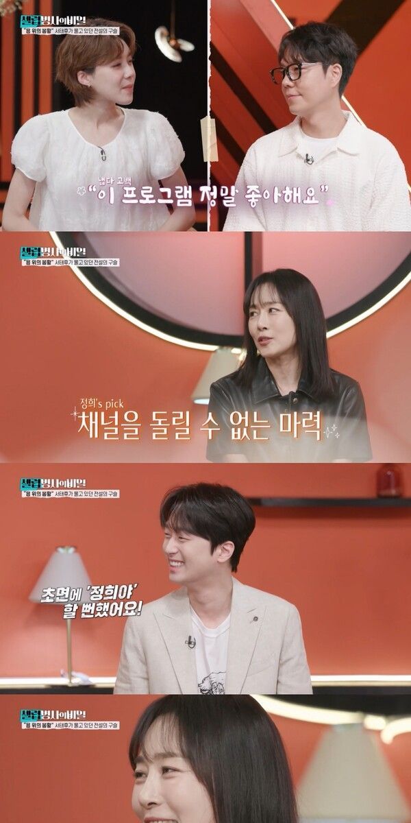 문정희는 동안 미모의 비결로 ‘수면 관리’를 꼽았다. 이에 장도연은 “이거 이낙준 선생님이 항상 말씀하시던 거다”라며 반가움을 드러냈다.