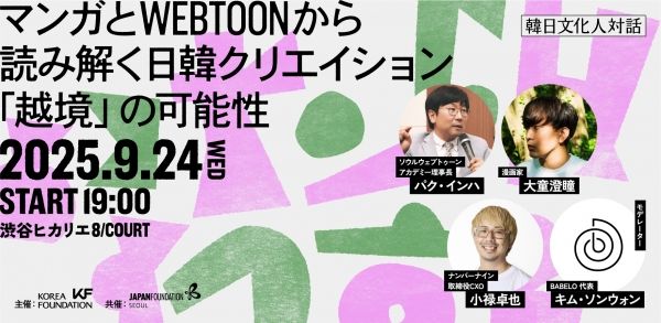 이번 대담에서는 ‘문화를 통해 연결되는 사람들’이란 주제로 만화와 웹툰 분야의 최전선에서 활동하는 양국의 전문가들을 초청해 국경을 초월한 창작 가능성에 대해 의견을 나눈다.