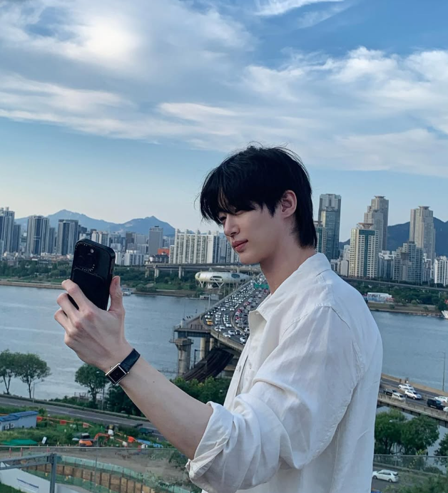 변우석은 지난 21일 자신의 SNS를 통해 근황이 담긴 사진을 공개했다. 사진 속 변우석은 한강이 내려다보이는 루프탑에서 셀카를 촬영 중인 모습이다. 화이트 셔츠 차림의 그는 자연스러운 헤어스타일과 뚜렷한 이목구비로 눈길을 끌었다.