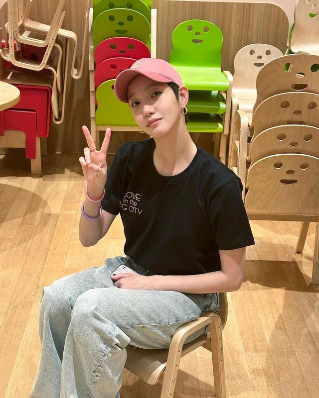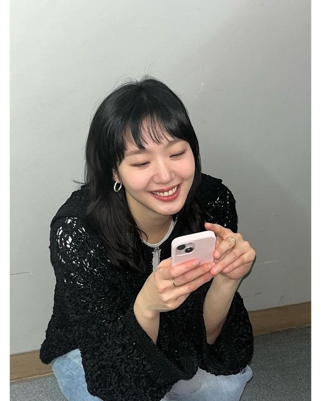 블랙 니트 톱과 데님 팬츠, 여기에 링 귀걸이를 더한 모습은 그 자체로 김고은의 시그니처 같은 스타일입니다. 군더더기 없는 조합이지만 도시적이고 세련되어 보이죠. 무심한 듯 시크한 매력이 한층 더 인상적으로 다가옵니다.