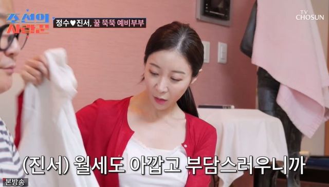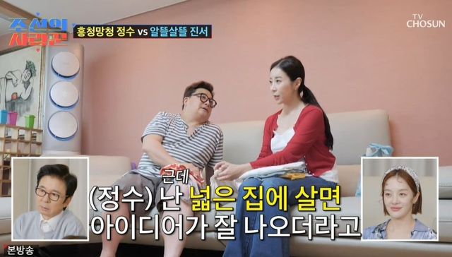 원진서는 50평대 집에 대해 “집이 너무 넓다. 월세도 아까운데, 좀 줄여서 전세로 가야 하지 않을까?”라고 제안했다. 이를 들은 윤정수는 “그렇게 하는 걸 목표로 하고”라고 말했지만, “넓은 집에 살면 아이디어가 잘 나오더라”면서 달갑지 않아 했다. 그러나 원진서는 “이사 가서 제일 넓은 방을 써라”라고 단호하게 말했다.