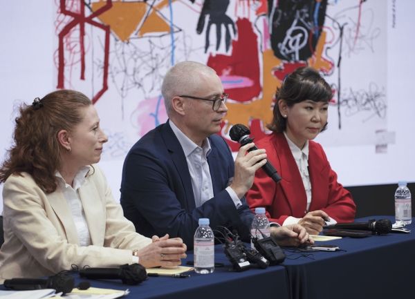 22일 동대문디자인플라자(DDP) 서울 화상 온 스튜디오에서 열린 간담회에는 이번 전시를 총괄 기획한 숨 프로젝트 이지윤 감독, 바스키아 미술사 전문가 디터 부흐하르트 큐레이터, 안나 카리나 호프바우어 큐레이터가 참석했다.