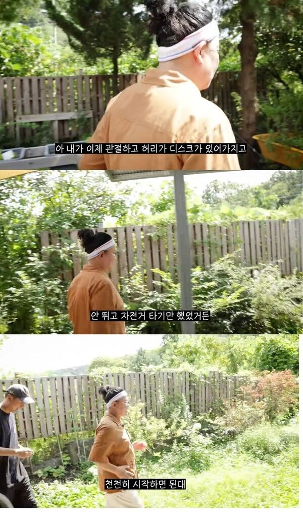 그는 "내가 관절하고 허리에 디스크가 있어서 뛰는 게 안 좋다고 하더라. 그래서 안 뛰고 자전거만 탔었다"고 말했다.