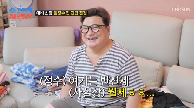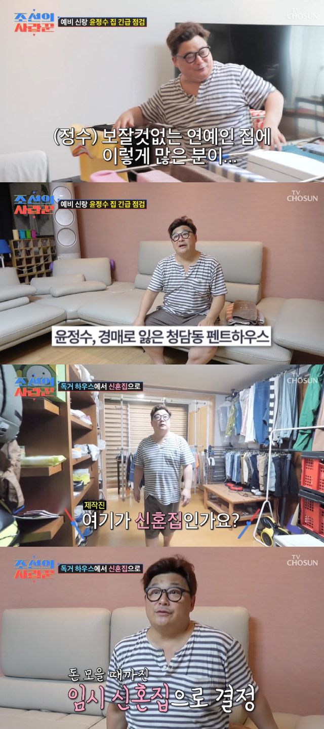 이날 제작진은 윤정수의 집 긴급 점검에 나섰다. 윤정수의 집 거실에는 무려 4개의 빨랫대가 눈길을 끌었다. 윤정수는 “보잘것 없는 연예인 집에 이렇게 많은 분들이 오셨다”고 말했다.
