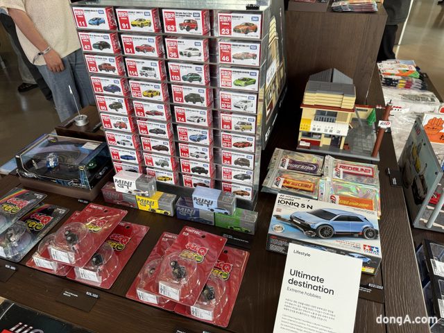 1층과 2층은 일본 츠타야 서점 운영사 CCC와 협업해 ‘오토라이브러리’로 꾸며졌다. 약 2500권의 자동차 전문 서적과 500여 개의 아이템이 감각적으로 전시되어 있다. 자동차의 역사와 디자인, 레이싱 문화, 미래 모빌리티를 담은 책들이 주를 이루고 있으며, 곳곳에는 아웃도어·여행·캠핑 등 자동차 라이프스타일과 연결된 서적들도 볼 수 있다.