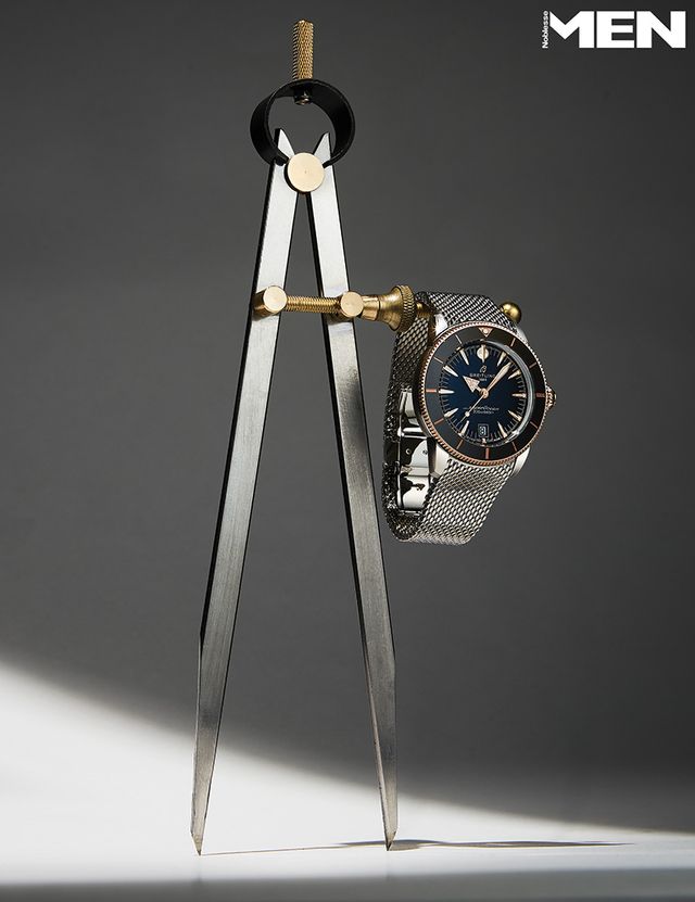 화살 모양 시침과 창 모양 분침, 뾰족한 인덱스 등 1950년대 오리지널 모델의 감성을 유지하며 한층 세련되고 정제된 스타일을 덧입었다. 브라이틀링 최초의 독점 스리 핸드 매뉴팩처 칼리버 B31을 탑재했고, 세라믹 인레이 베젤과 메시 브레이슬릿 역시 고유의 매력을 강조한다. 슈퍼오션 헤리티지 B31 오토매틱 42 Breitling.