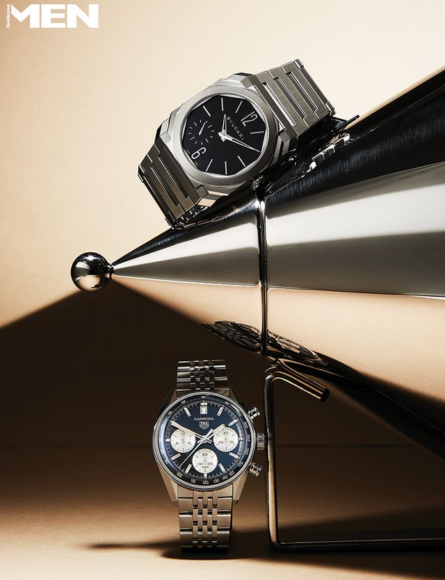 지름 40mm, 두께 6.40mm의 엑스트라 씬 케이스에 두께 2.23mm의 불가리 인하우스 울트라 씬 셀프와인딩 무브먼트를 탑재했다. 역동적 라이프스타일에 어울리는 스포티한 매력을 지녔으며, 스크루 다운 크라운을 통해 100m 방수 등 뛰어난 성능을 갖췄다. 옥토 피니씨모 S Bvlgari.