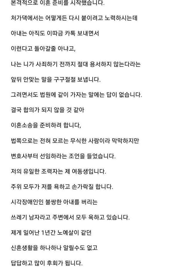 시각장애인 여자와 결혼후 1년만에 이혼을 결심한 남자.jpg