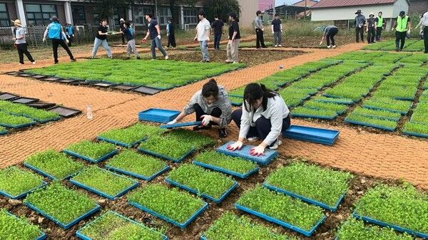 한국농어촌공사는 23일 전남 나주시 산포면 산포초등학교에서 지역 주민·기관과 함께 'ESG 생태체험학습장' 조성을 위한 화이트 클로버 모종 이식 행사를 열었다고 밝혔다.