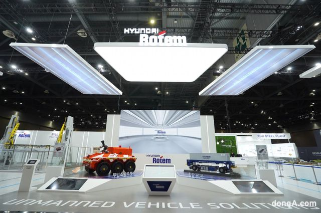 현대로템의 경우 방산 제품을 기반으로 개발한 기술력을 선보인다. 차세대 모빌리티 시장 흐름에 맞춰 무인화와 전동화, 친환경 기술을 주제로 부스를 조성했다. 무인 모빌리티 특화 전시 공간에는 무인소방로봇과 항만무인이송차량(AGV, Automated Guided Vehicle) 등 AI 기술이 접목된 차량이 관람객을 맞이한다.