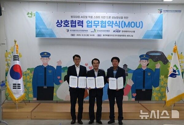 제주자치경찰위원회는 23일 한국인터넷진흥원(KISA), 한국레이더시스템과 인공지능 성능 고도화를 위한 업무협약(MOU)을 체결하고 범죄예방 인공지능(AI) 드론개발에 나선다고 밝혔다.