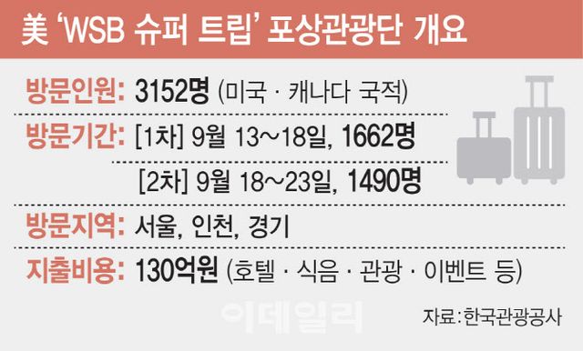 ‘슈퍼 트립’(Super Trip) 타이틀을 달고 방한한 WSB 포상관광단이 5박 6일간의 공식 일정을 마치고 23일 인천공항을 통해 출국했다. 지난 13일부터 두 그룹으로 나눠 방한한 WSB 슈퍼 트립 포상관광단 규모는 총 3152명. 역대 미국과 캐나다 국적 방한 단체 중 가장 큰 규모다.