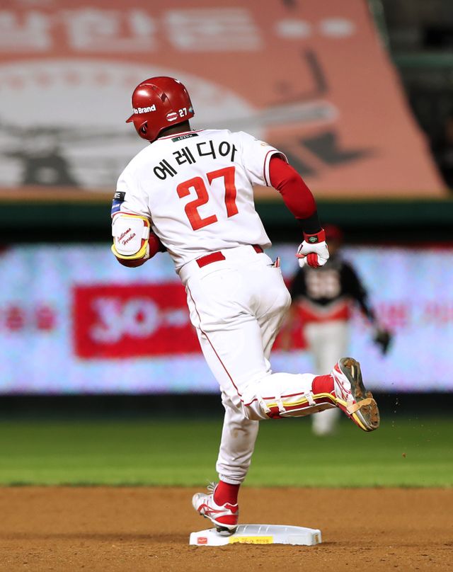 에레디아는 홈런뿐만 아니라 1회 첫 타석 몸에 맞는 공, 3회 두 번째 타석 우전 안타로 멀티 출루를 해냈다. 최종 기록은 3타수 2안타(1홈런) 1득점 2타점. 반면 KIA는 외국인 타자 패트릭 위즈덤이 3타수 무안타로 침묵했다. 1회 첫 타석 2루 땅볼로 물러난 위즈덤은 4회 1사 1루에서 헛스윙 삼진으로 아웃됐고 2루 도루를 시도한 박찬호까지 잡혀 순식간에 이닝이 종료됐다.