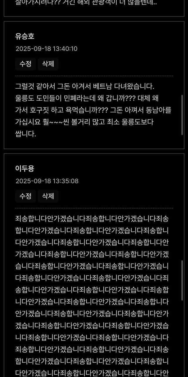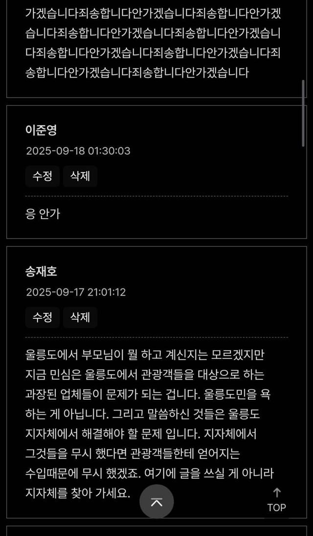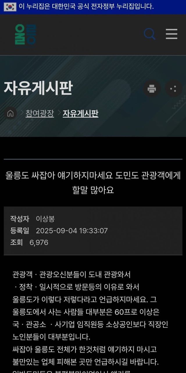 죽는 소리 하길래 울릉 군청 게시판을 가보았다
