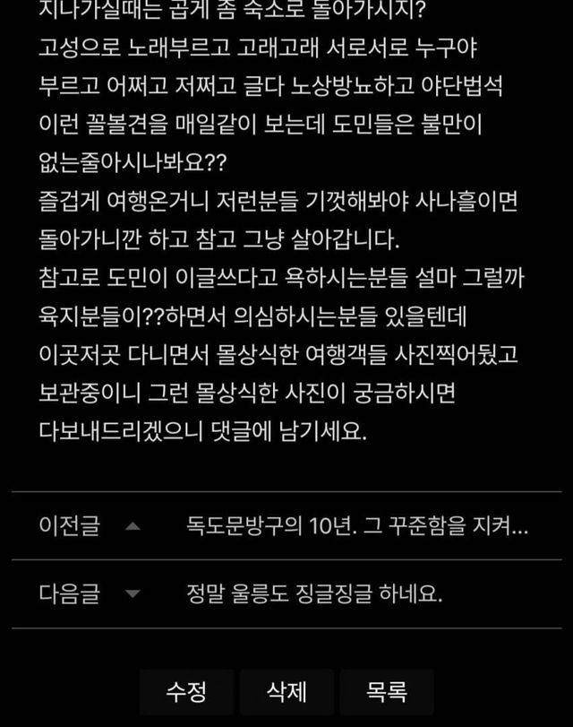조롱을 하면서 울릉도 안가요 시전중이다