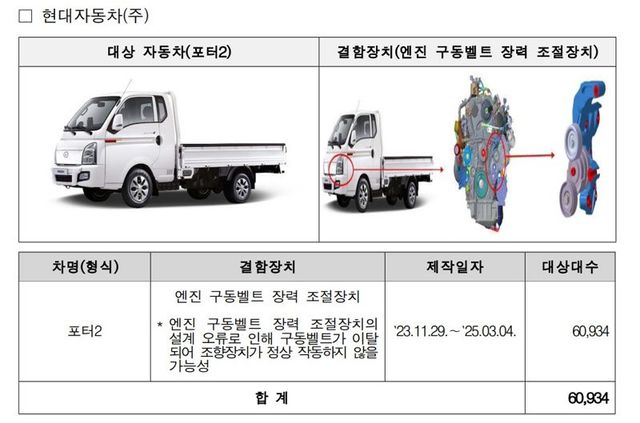 이번 리콜은 총 8개 차종에 걸쳐 진행되며, 현대차 포터2와 기아 봉고3가 가장 많은 리콜 대상에 포함됐다. 두 차종은 엔진 구동벨트 장력 조절장치의 설계 오류로 구동벨트가 이탈될 가능성이 있어 조향장치 작동에 문제가 발생할 수 있다. 이들 차량은 9월 25일부터 시정조치가 시작된다.