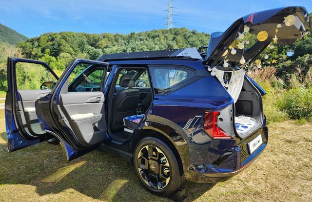 EV5가 내세우는 강점 중 하나는 활용성이다. 2열 시트를 접으면 바닥이 완전히 평탄해지며 풀 플랫 공간이 펼쳐진다. 자전거와 캠핑 장비는 물론 차박까지 소화할 수 있는 넉넉한 적재공간이 나와 가족 단위 레저 활동에 최적화됐다. 단순히 짐을 싣는 수준을 넘어 차 안이 하나의 작은 캠핑 베이스캠프로 변신하는 것이다.