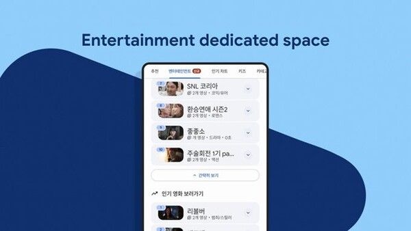 뉴시스 보도에 따르면, 24일 구글에 따르면 엔터테인먼트 탭은 숏폼 드라마, 웹툰, 영화·TV, 케이팝 등 다양한 콘텐츠를 한곳에서 모아볼 수 있는 공간이다.