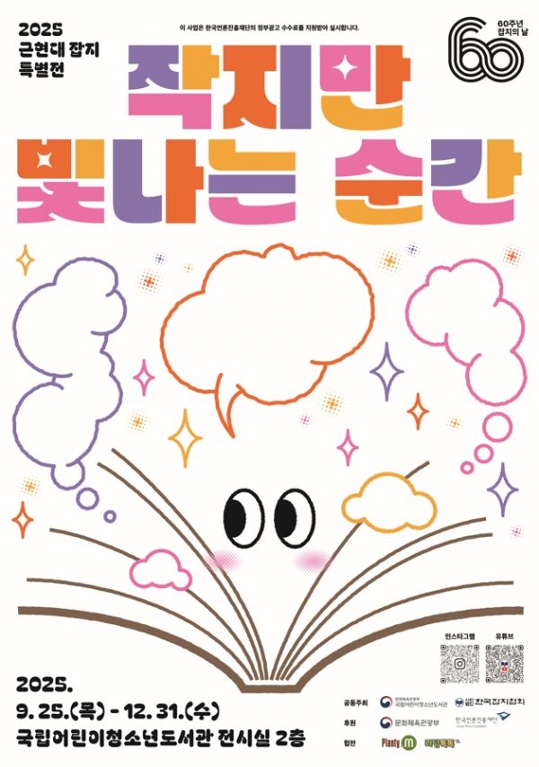 국립어린이청소년도서관은 잡지의 날 제정 60주년을 맞아 한국잡지협회와 함께 근현대잡지 특별전 ‘작지만 빛나는 순간’을 연다. 이번 전시는 잡지가 걸어온 작은 발자취와 빛나는 순간들을 한눈에 살펴볼 수 있도록 마련됐다.