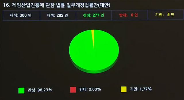 ▲ 올해 1월 국회를 통과한 확률형 아이템 징벌적 손해배상법에 대한 본회의 투표 결과 (자료출처: 국회방송 생중계 갈무리)