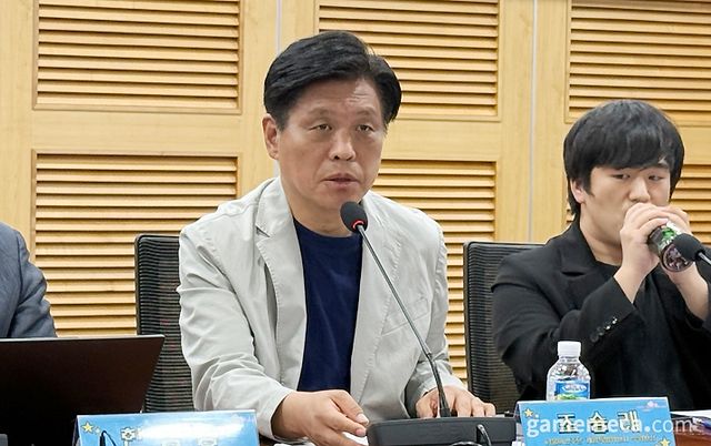 ▲ 지난 5월에 열린 더불어민주당 게임특별위원회 정책 제안 기자간담회에 참석한 조승래 의원 (사진: 게임메카 촬영)