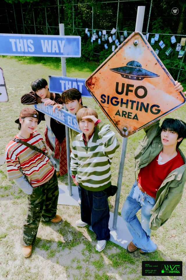 공개된 사진 속 원위는 키치함과 레트로함이 공존하는 캐주얼 룩을 입고 등장, 5인 5색 소년미를 자랑했다. ‘유에프오 출몰 지역’이라고 적힌 표지판 앞에 선 다섯 멤버는 탐험 준비를 마친 듯 설렘 가득한 표정을 짓고 있다.