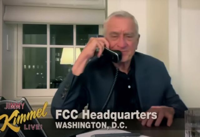키멀이 드 니로에게 FCC가 조직폭력배(mob tactics)처럼 언론의 자유를 억압하는 것 같다며 욕은 고 하자, 드 니로는 ‘F욕설’을 내뱉으며 “내가 바로 FCC다, 난 뭐든 말할 수 있다”고 반발했고 “말은 더이상 공짜가 아니다. 이제 단어별로 요금을 매긴다”고 밝혔다.
