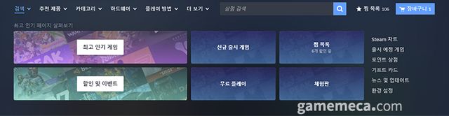 ▲ 측면 메뉴가 상단에 포함되며 구조가 변경됐다 (사진출처: 스팀)