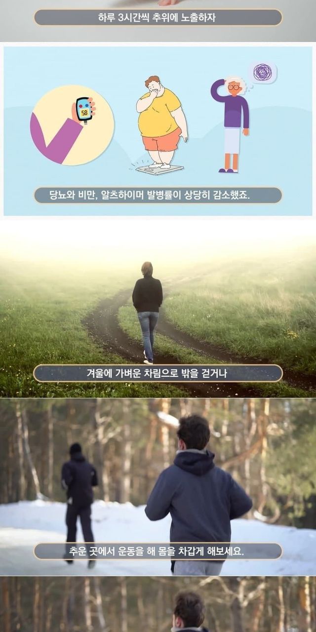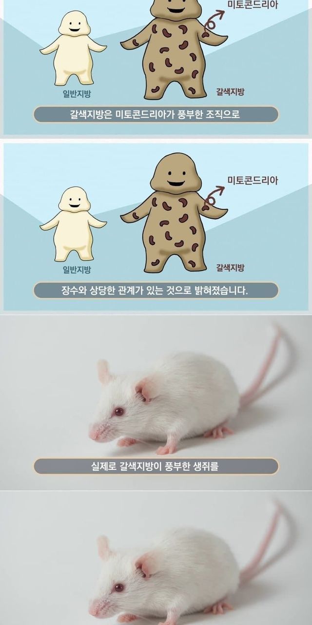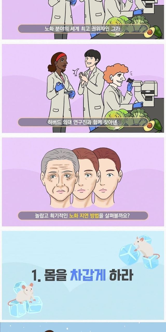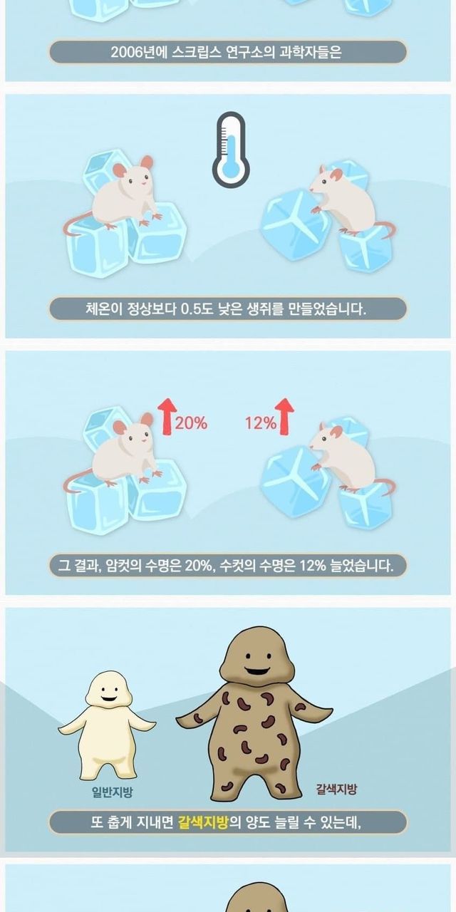 저 생쥐의 메커니즘은 모르겠습니다만 싱클레어박사가 몸을 추위에 노출하라는 것은 몸이 적당한 스트레스에 노출되면 우리몸에서 노화세포를 제거하고 변형된 유전자를 수리하는 유전자가 발현되서 그렇다고 설명합니다