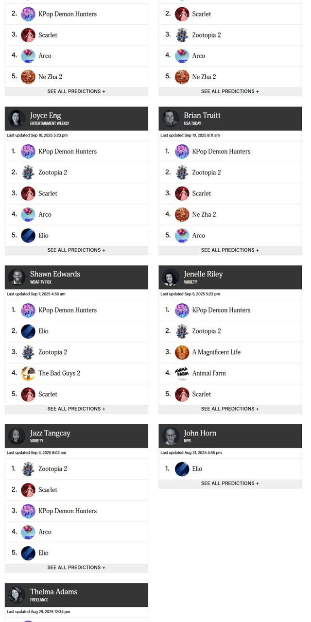 즉 65%가 아카데미 장편 애니상 수상으로 예측