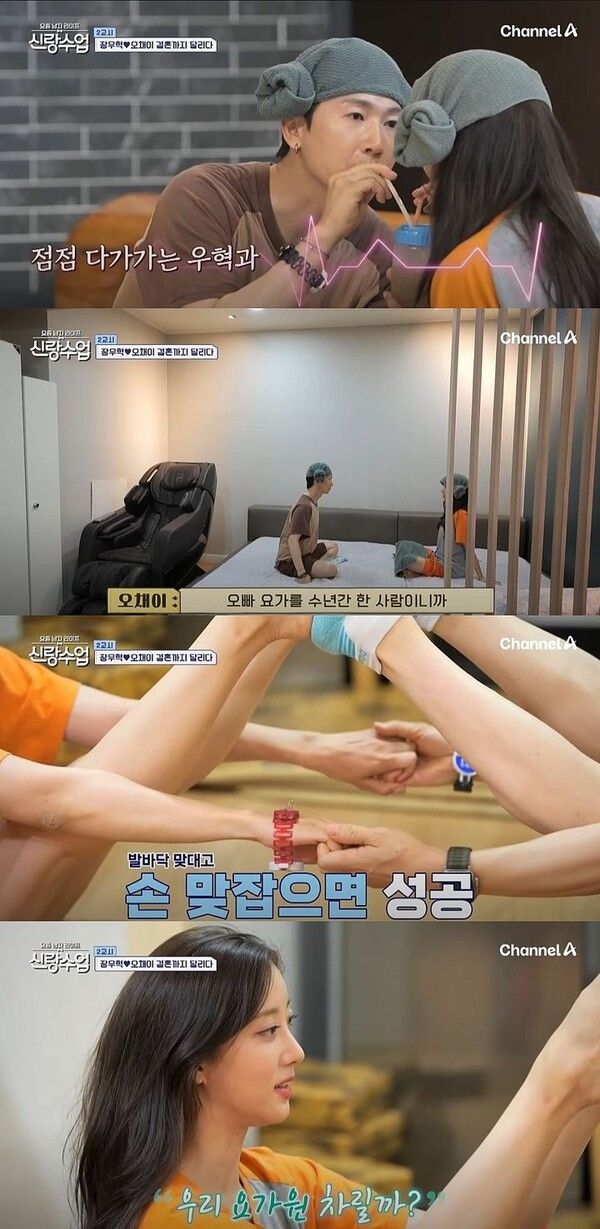 또 오채이는 장우혁과 손발을 맞대고 커플 요가를 하던 중 "우리 요가원 차리면 어떻냐"라고 한다.