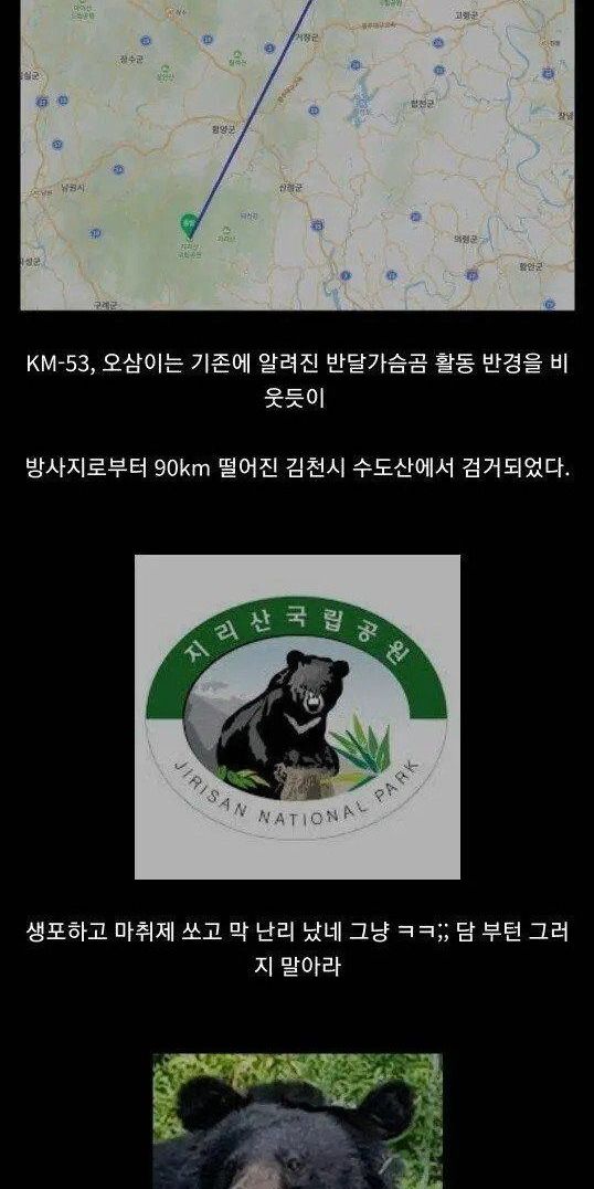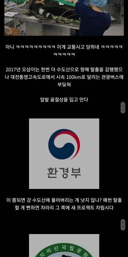 마취총 맞은채 런하다가 계곡에서 굴러떨어져 사망