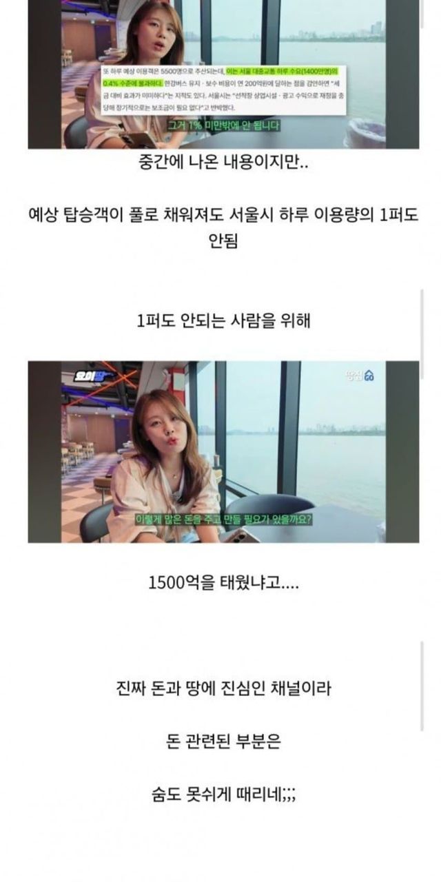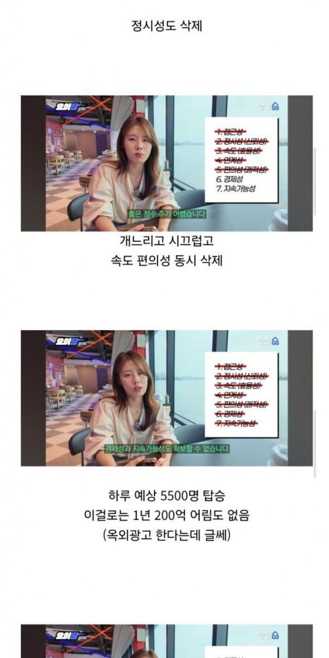 한강버스를 출퇴근용으로 리뷰하는 부동산채널