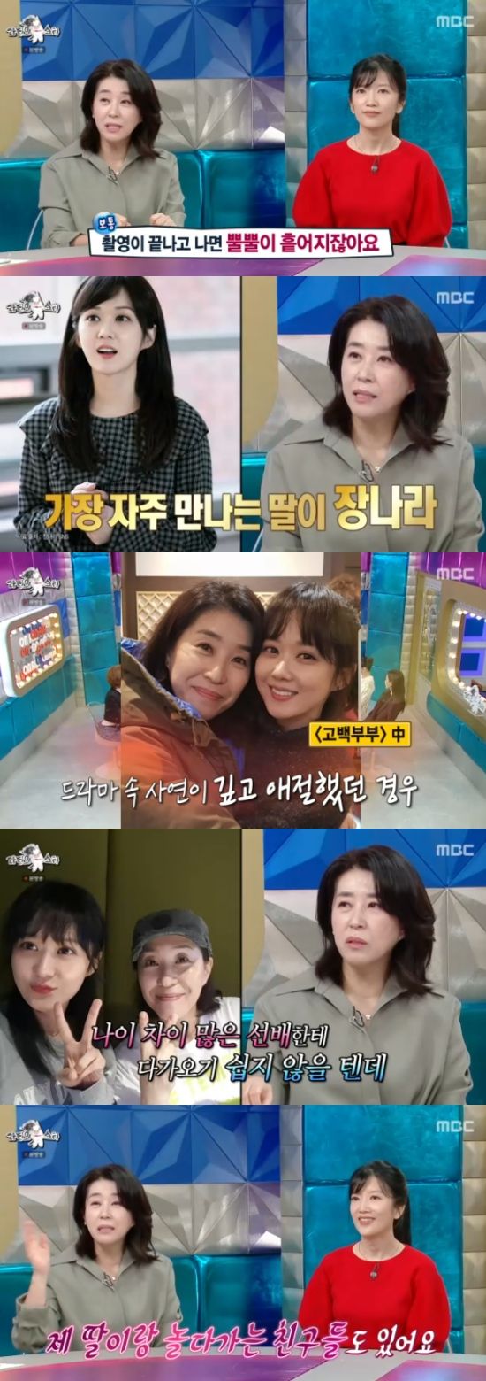 그러면서 김미경은 유독 애정가는 딸도 언급했다. 김미경은 "촬영이 끝나면 만나기 힘든데, 끝나도 전화주는 친구들이 있다. 가장 자주 보는 딸은 장나라와 김태희"라고 전했다.
