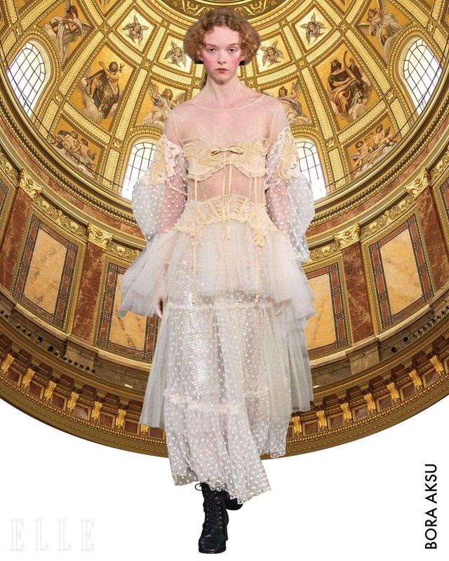이런 역사적 사실을 담은 빅토리언 스타일을 우리는 영화 속에서도 자주 볼 수 있는데, 지난해 개봉한 영화 〈가여운 것들 Poor Things〉에서는 배우 엠마 스톤이 퍼프 슬리브와 하이넥 블라우스, 부풀린 시폰 드레스 등 빅토리아 무드 특유의 장식적 요소를 과감하게 표현한 룩을 입고 등장했으며, 이는 패션 신에서도 크게 회자됐다. 또 넷플릭스 인기 시리즈 〈브리저튼 Brigerton〉에서는 고전적이고 사랑스러운 분위기가 강조됐는데, 이는 ‘레전시코어(Regencycore)’라는 새로운 패션 키워드를 탄생시키기도 했다. 그리고 이번 시즌, 빅토리아 무드가 또 한 번 패션 신을 장악했다. 가장 먼저 디올 컬렉션에서 빅토리아 시대의 영향을 강하게 느낄 수 있었다. 코르셋과 레이스, 러플을 컬렉션 곳곳에 활용하고, 크림과 블랙 컬러를 메인으로 활용해 아름답고 고전적인 분위기를 완성했다. 여기에 티셔츠와 가죽 스커트 같은 아이템을 매치해 현대 감각을 주입한 것도 특징이다. 한편, 무게감 있는 빅토리아풍의 패션을 고스란히 담아낸 맥퀸 컬렉션에서는 션 맥기르의 재능을 다시 한 번 엿볼 수 있었다. 드라마틱한 하이넥 칼라를 중심으로 부풀린 실루엣과 레이어드, 고딕 자수 디테일까지 담아낸 컬렉션은 빅토리아 코드를 완벽히 구현하며 화려하고 근엄한 시대의 아우라를 고스란히 펼쳐냈다.