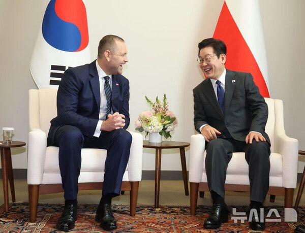 유엔총회 참석차 방미 중인 이재명 대통령이 24일(현지시간) 카를 나브로츠키 폴란드 대통령과 첫 정상회담을 가졌다.