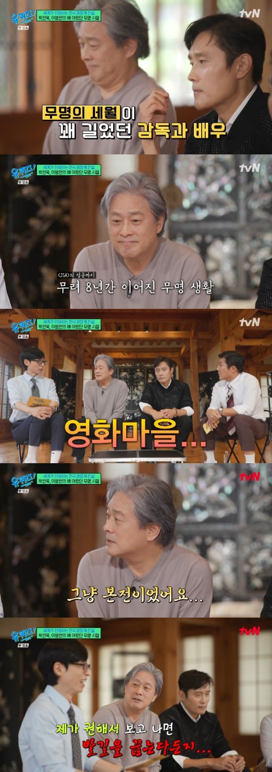이날 방송에서 유재석은 "지금은 영화계에서 상징적인 두 분이지만 무명 생활이 길었다. 박찬욱 감독님도 '공동경비구역 JSA' 이전에 8년 정도 무명 감독 시절이 있었다"고 했다.