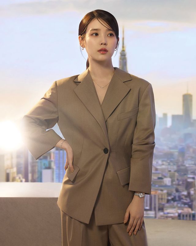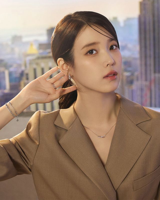 아이유는 황혼이 물든 도심 하늘 아래, 화이트 셔츠와 함께 로즈골드 네크리스, 원터치 이어링, 브레이슬릿을 레이어링해 모던하고 감각적인 스타일링을 완성했다. 또 다른 컷에서는 세련된 브라운 수트에 실버 컬렉션을 매치해 포멀한 룩을 완성했다. 다양한 아이템을 멋스럽게 매치해 도시적이고 당당한 무드를 더했다.