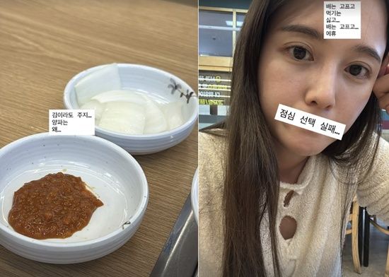 그는 양파·장 사진을 함께 올리며 "김이라도 주지, 양파는 왜", "배는 고프고 먹기는 싫고, 점심 선택 실패" 등 불편한 심정을 대놓고 표현했다.