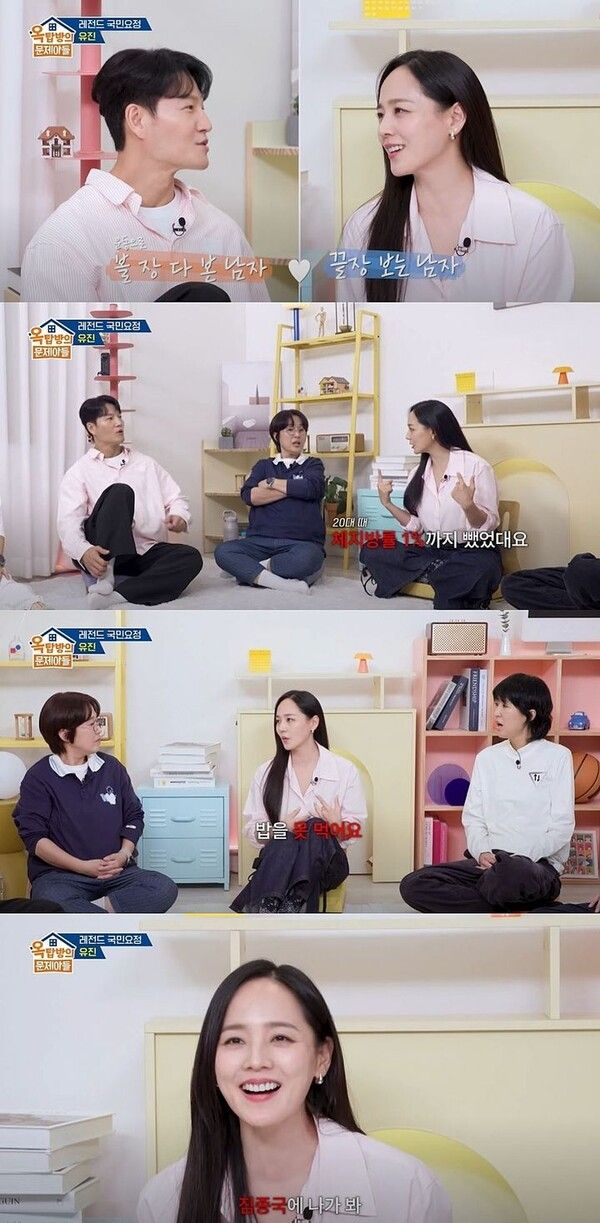 유진은 "운동을 하면 한 부위를 20번씩 40세트를 한다. 문제는 그렇게 하고 오면 힘이 다 빠져서 밥을 못 먹는다"고 말한다.