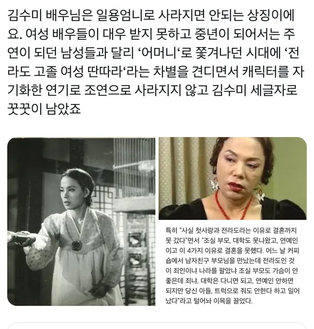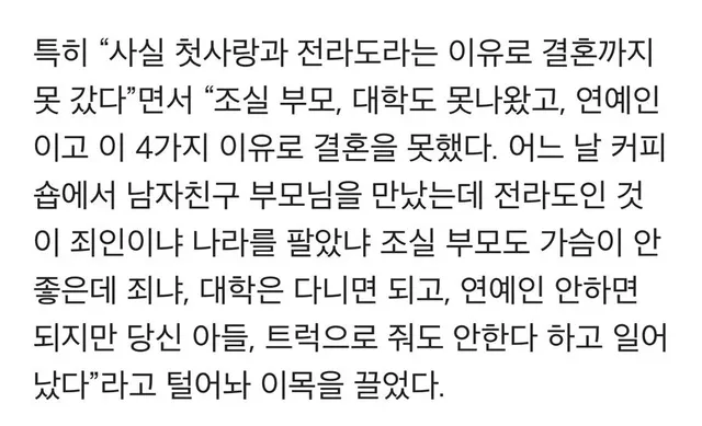 전라도 + 고졸+ 여자 + 딴따라 출신의 차별을 견디며 대성공 하심