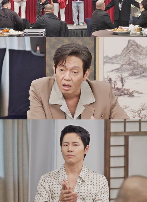 이어 ‘뽕탄소년단’은 고액의 행사비만 보고 수락한 행사장에서 상상도 못한 상황과 맞닥뜨린다. 그곳은 다름 아닌 조폭 조직 ‘식구파’ 큰형님의 생일파티 현장. 수십 명의 조폭들 사이로 조우진, 박지환, 이규형 등 막강 배우 군단이 등장해 극의 몰입도를 끌어올린다. 추성훈과 이규형의 신경전, 조우진의 반전 제안 등 팽팽한 긴장과 유쾌한 반전이 교차하는 하이라이트 장면이 펼쳐질 예정이다.
