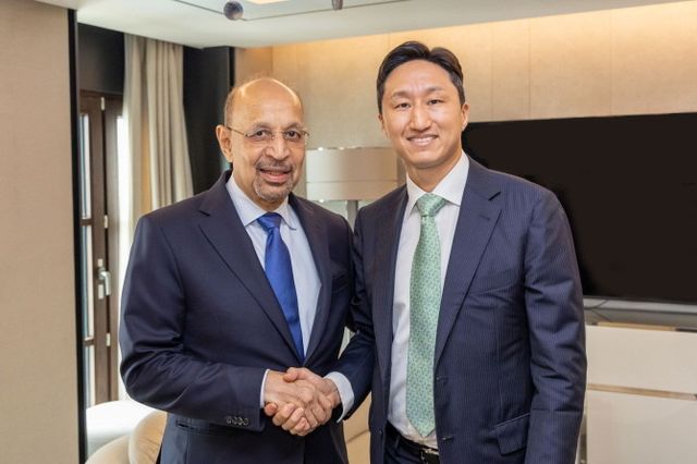 정기선 HD현대 수석부회장(사진 오른쪽)이 25일 칼리드 알팔리(H.E. Khalid AlFalih) 사우디 투자부 장관을 만나 사업 협력을 논의했다. ⓒ HD현대