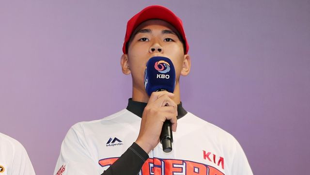 2018년 서울 중구 웨스틴조선호텔 그랜드볼룸에서 열린 '2019 KBO 2차 신인드래프트'에서 덕수고 홍원빈이 KIA에 지명을 받은 뒤 소감을 밝히고 있다. / 뉴스1