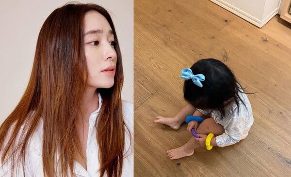 사진 속 이민정 딸은 머리에 리본을 하고 바닥에 앉아 장난감을 들고 있는 모습이다.
